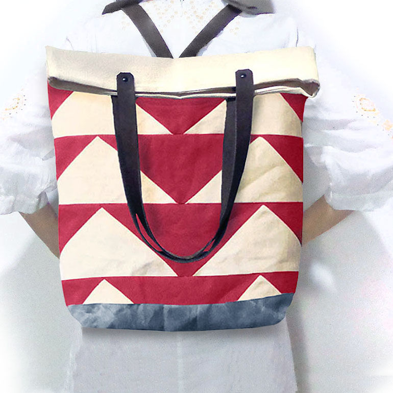 Convertible Tote, Backpack w/ Leather Straps - Bunting Triangle Red
